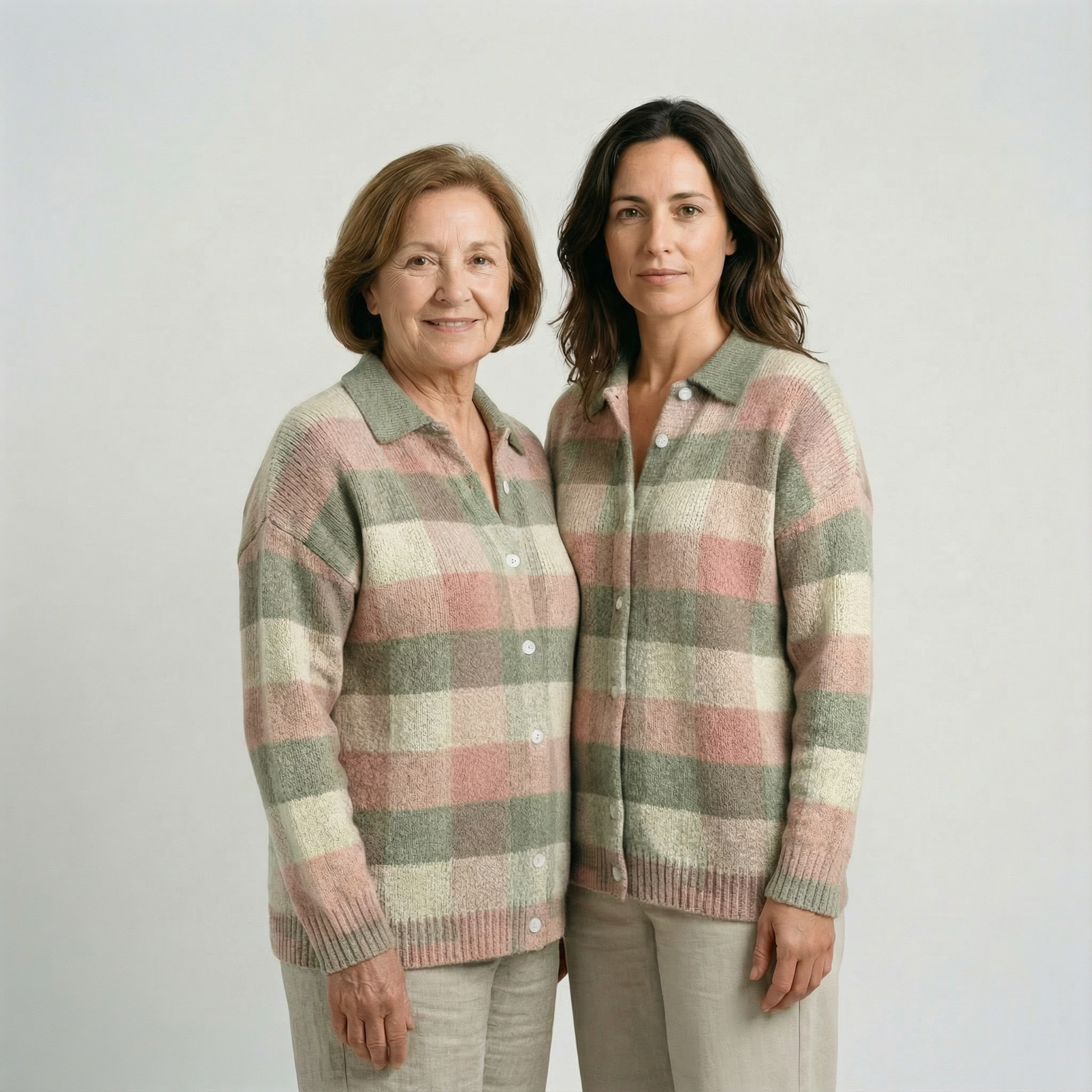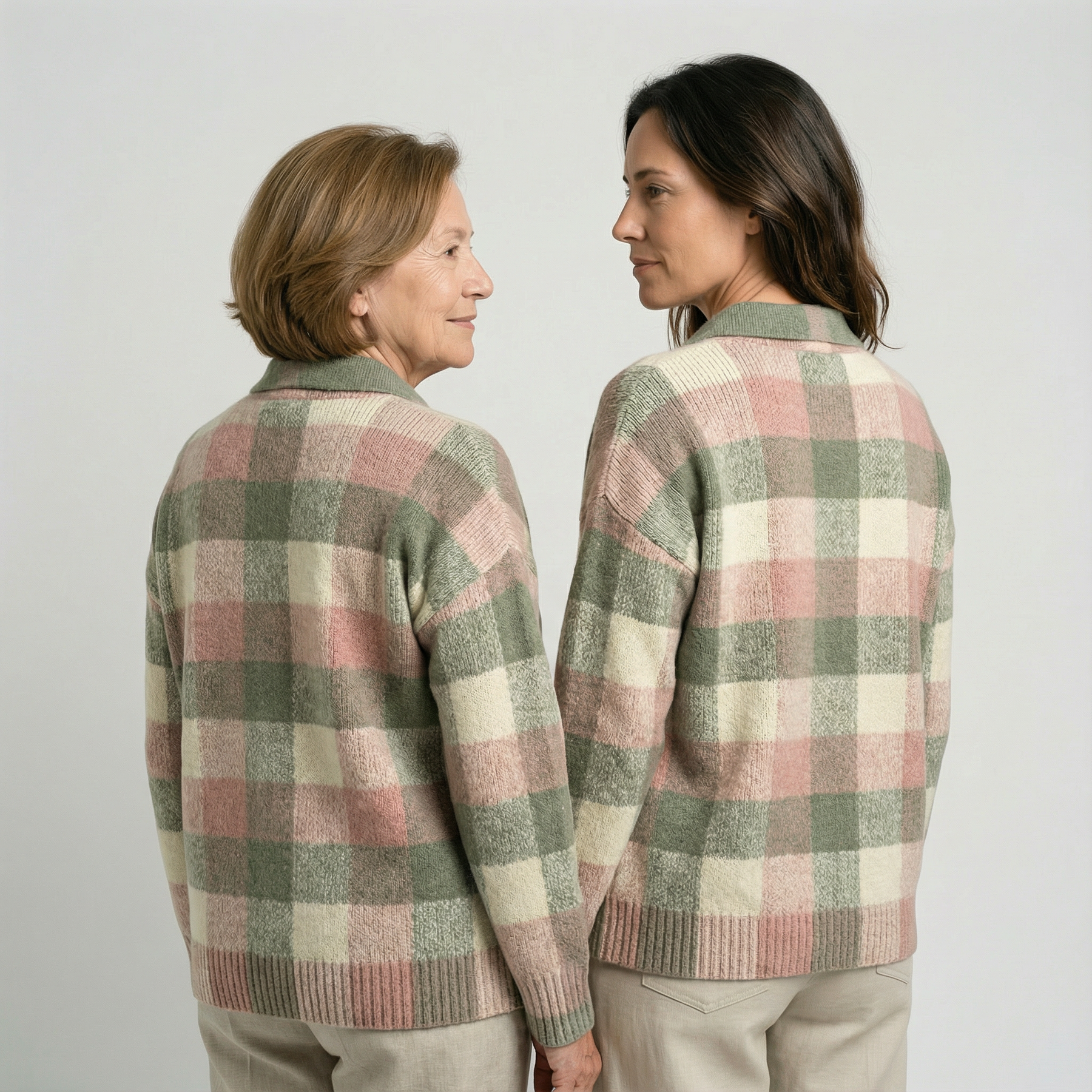 Dulce, femenino y súper cómodo: Alba es el suéter perfecto si te gustan los tonos delicados y un estilo bien cuidado. El diseño de cuadros en tonos pastel crea un look elegante y relajado, fácil de combinar e ideal para cualquier plan del día a día.