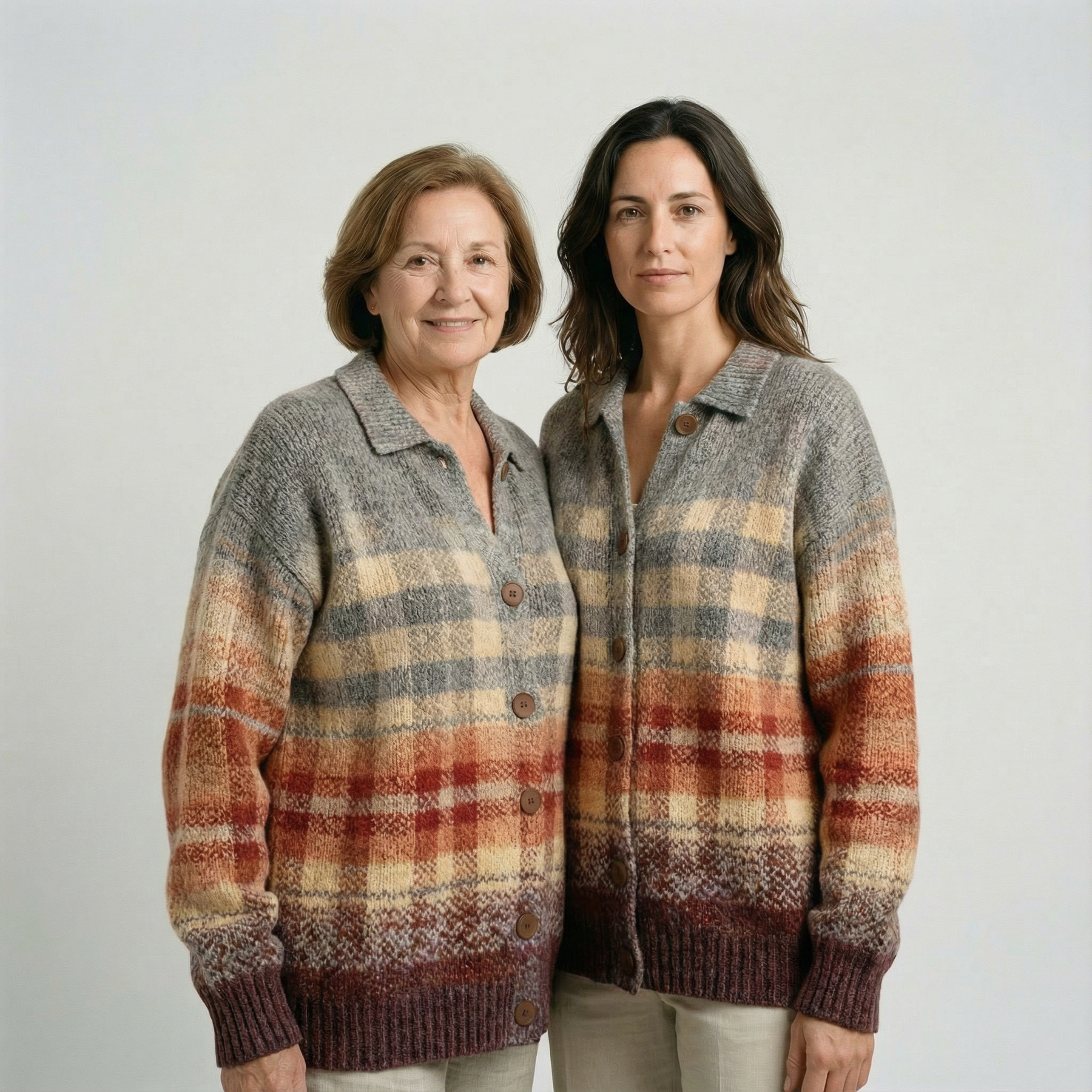 Acogedor, elegante y súper versátil: Beatrice es el suéter ideal para quien quiere ir arreglada sin renunciar a la comodidad. Su diseño de cuadros degradados en tonos cálidos y naturales aporta una elegancia discreta que combina fácil con cualquier outfit.