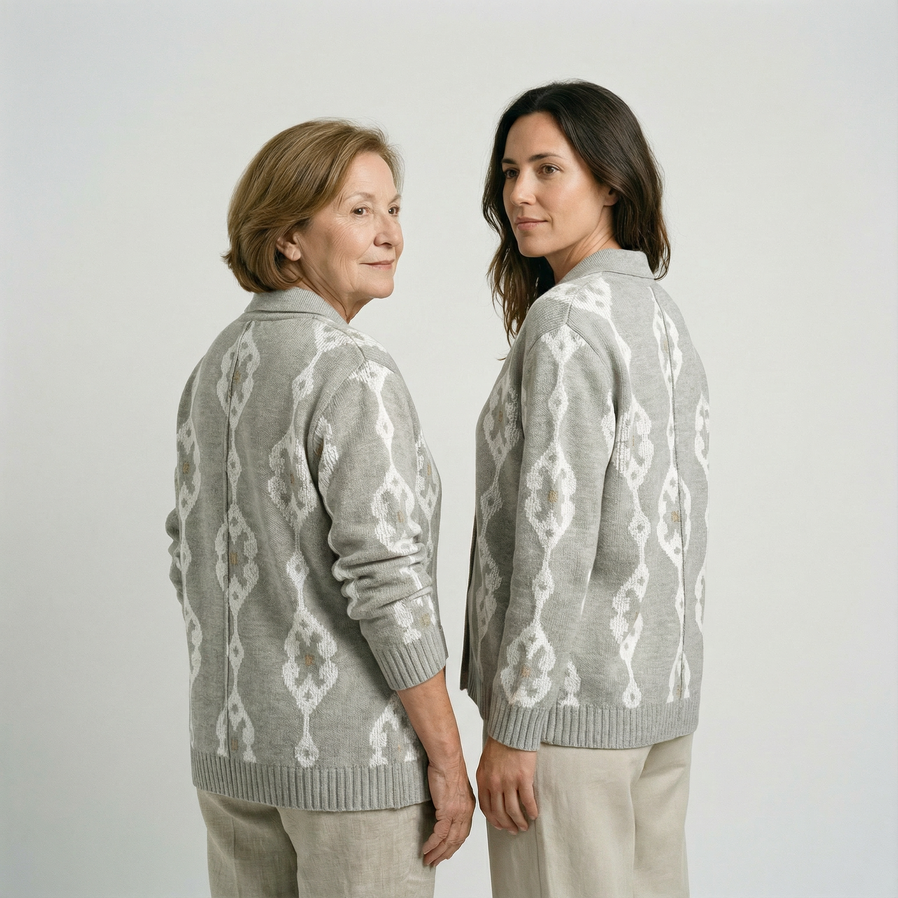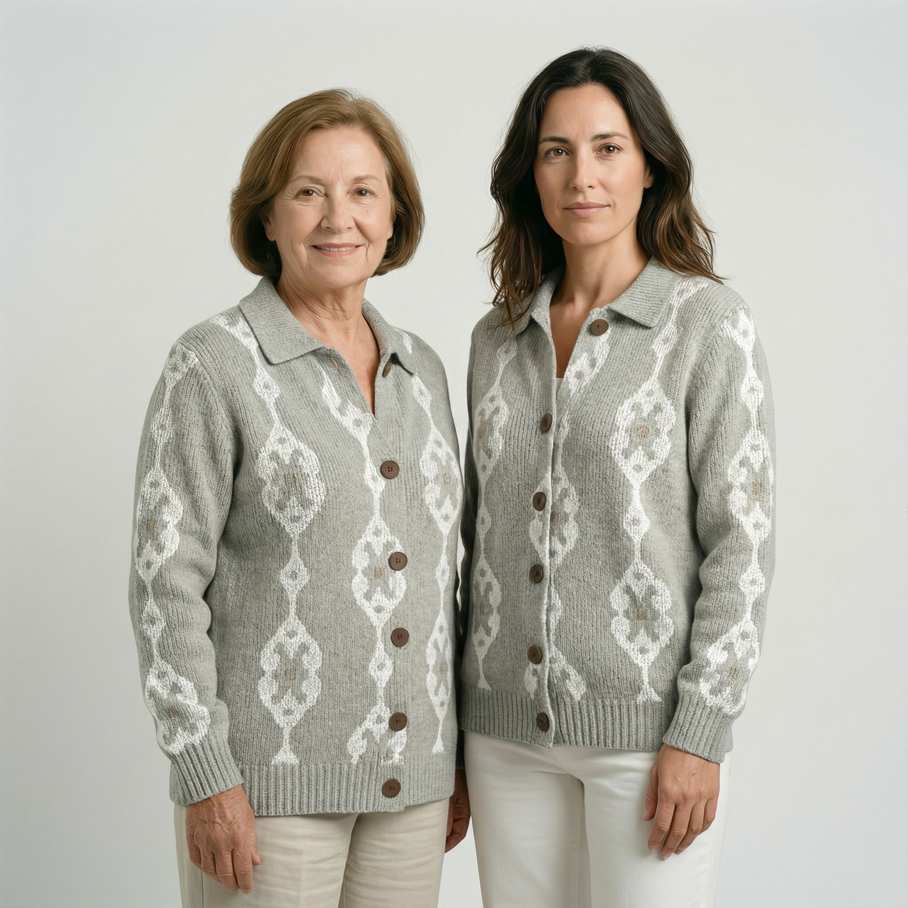 Delicado, elegante y súper cómodo: Giuliana es el suéter perfecto si te gusta un estilo fino y luminoso. Sus motivos decorativos claros le dan un toque especial pero discreto, y por eso combina fácil con jeans, pantalones claros o looks más chic.