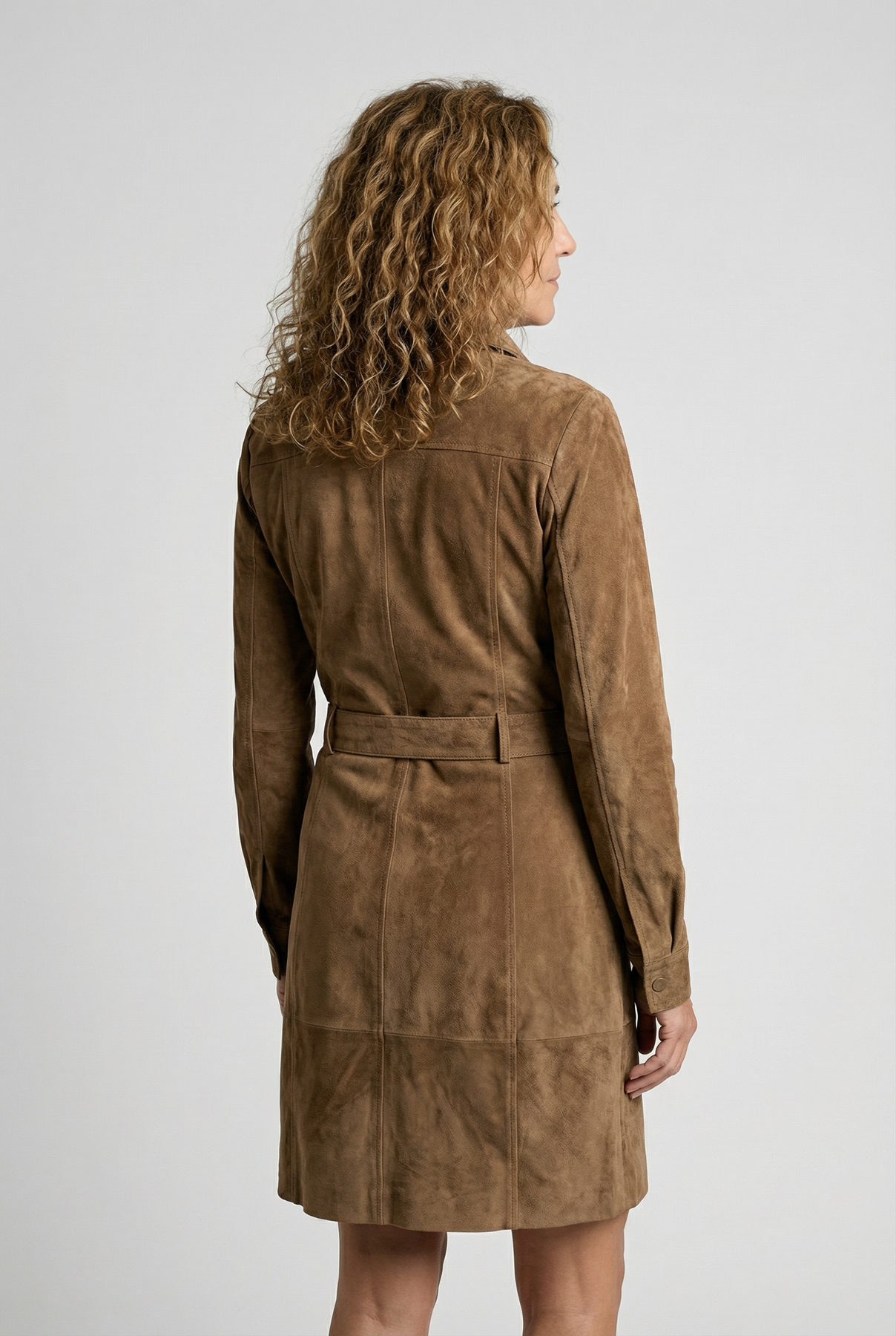 La bata Mercedes encarna una sofisticación atemporal con un toque contemporáneo. Confeccionada en suave y estructurado ante, presenta una silueta ajustada con una cintura ceñida que realza cada curva. Su elegante cuello y su cierre de botones crean un aire refinado y naturalmente seguro, perfecto tanto de día como de noche.