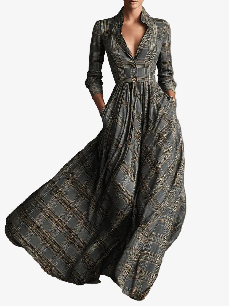 El vestido Eva es la unión perfecta entre elegancia clásica y encanto contemporáneo. Su diseño de cuadros en tonos suaves, unido a un corte maxi de caída impecable, crea una silueta estilizada y femenina que destaca con cada movimiento.